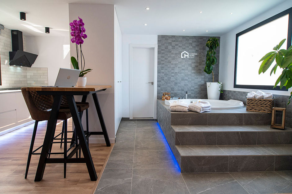 Laguna Home & Suites es un alojamiento vacacional en San Cristóbal de La Laguna, cerca del casco histórico declarado Patrimonio de la Humanidad por la UNESCO. Ofrece opciones como lofts, un ático con hidromasaje exterior, una casa y un apartamento deluxe, todos con diseño nórdico, camas cómodas, cocinas equipadas, aire acondicionado y Wi-Fi. Algunos incluyen terrazas y jacuzzis privados para un toque de lujo. Destaca por su limpieza, confort y ubicación, siendo ideal para familias, parejas, amigos y viajeros individuales.